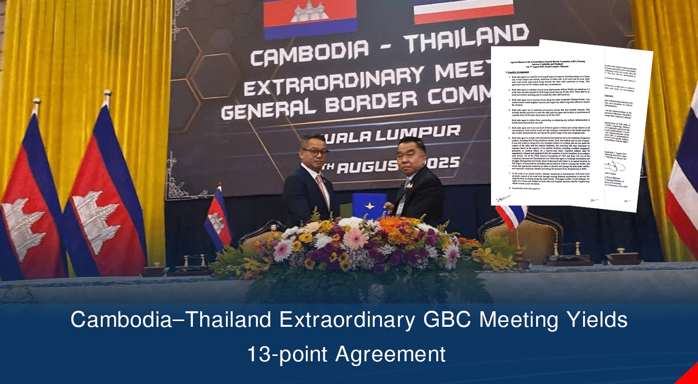A seven-nation Interim Observer Team (IOT), led by Malaysian Defence Attaché to the Kingdom of Cambodia, and joined by other residents and non-resident Defence Attaché to the Kingdom of Cambodia conducted an observation visit to Boeung Trakoun Border Checkpoint in Banteay Meanchey Province. These developments occurred subsequent to the ceasefire agreement and the release of the joint statement during the Extraordinary Cambodia–Thailand General Boundary Committee Meeting (GBC Meeting) held on 7 August 2025, in Malaysia.