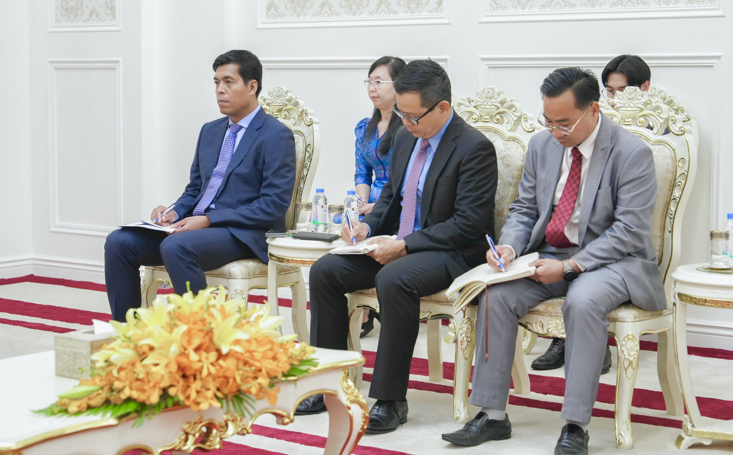 (ភ្នំពេញ)៖ នាព្រឹកថ្ងៃទី៣ ខែមីនា ឆ្នាំ២០២៦ ឯកឧត្តម វង្សី វិស្សុតឧបនាយករដ្ឋមន្ត្រីប្រចាំការ រដ្ឋមន្ត្រីទទួលបន្ទុកទីស្ដីការគណៈរដ្ឋមន្ត្រី ទទួលជួបពិភាក្សាការងារជាមួយលោកជំទាវ Bridgette Walker ភារធារីស្តីទីនៃស្ថានទូតសហរដ្ឋអាម៉េរិកប្រចាំនៅកម្ពុជាអមដោយមន្រ្តីជាន់ខ្ពស់ នៅទីស្តីការគណៈរដ្ឋមន្ត្រី ដើម្បីពិភាក្សាអំពីការពង្រឹងទំនាក់ទំនងទេ្វភាគីលើវិស័យពាណិជ្ជកម្ម ធុរកិច្ច ការទូត និងសន្តិសុខ រវាងប្រទេសកម្ពុជានិងសហរដ្ឋអាម៉េរិក និងកិច្ចសហប្រតិបត្តិការក្នុងវិស័យសំខាន់ៗដែលមានសក្តានុពលសម្រាប់ប្រទេសទាំងពីរ។